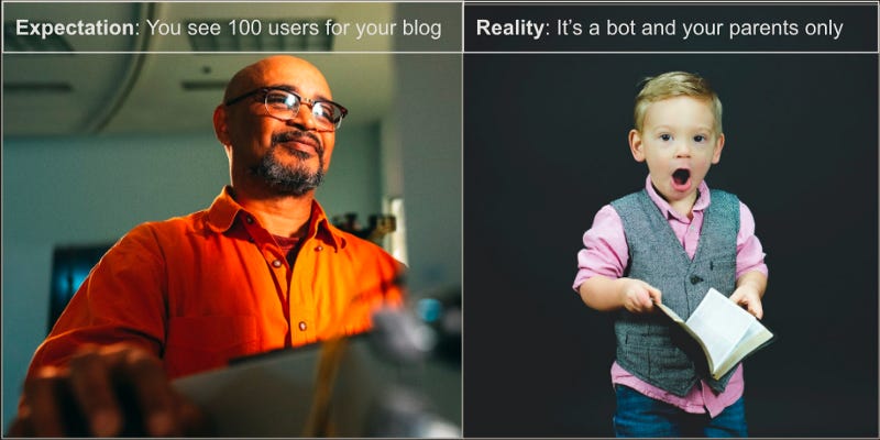 You must’ve seen social media platforms report on their yearly total user count broken down by new and returning users. I’m trying to do something similar for my blog, I’m looking for the accurate count of users that have visited my blog, how many of these were new, and how many were returning users. Now a user for a social media platform is anyone who creates an account but my blog doesn’t require you to sign up to read so I can’t use the same approach. So I’ll have to be creative as to how I differentiate new and returning users to get the required counts.
